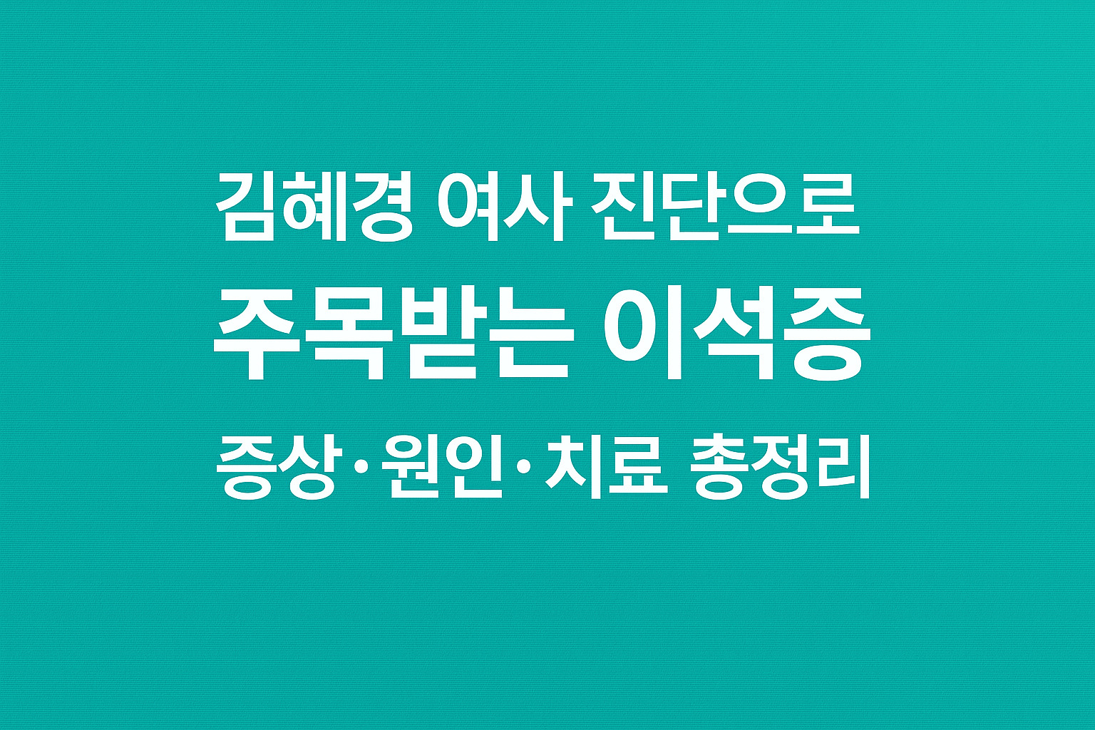 이석증은 이름은 생소하지만, 실제로는 매우 흔하게 발생하는 어지럼증의 원인입니다. 김혜경 여사의 진단 소식으로 인해 이 질환에 대한 관심이 높아진 만큼, 증상을 미리 알고 대처 방법을 숙지해 두는 것이 중요합니다.