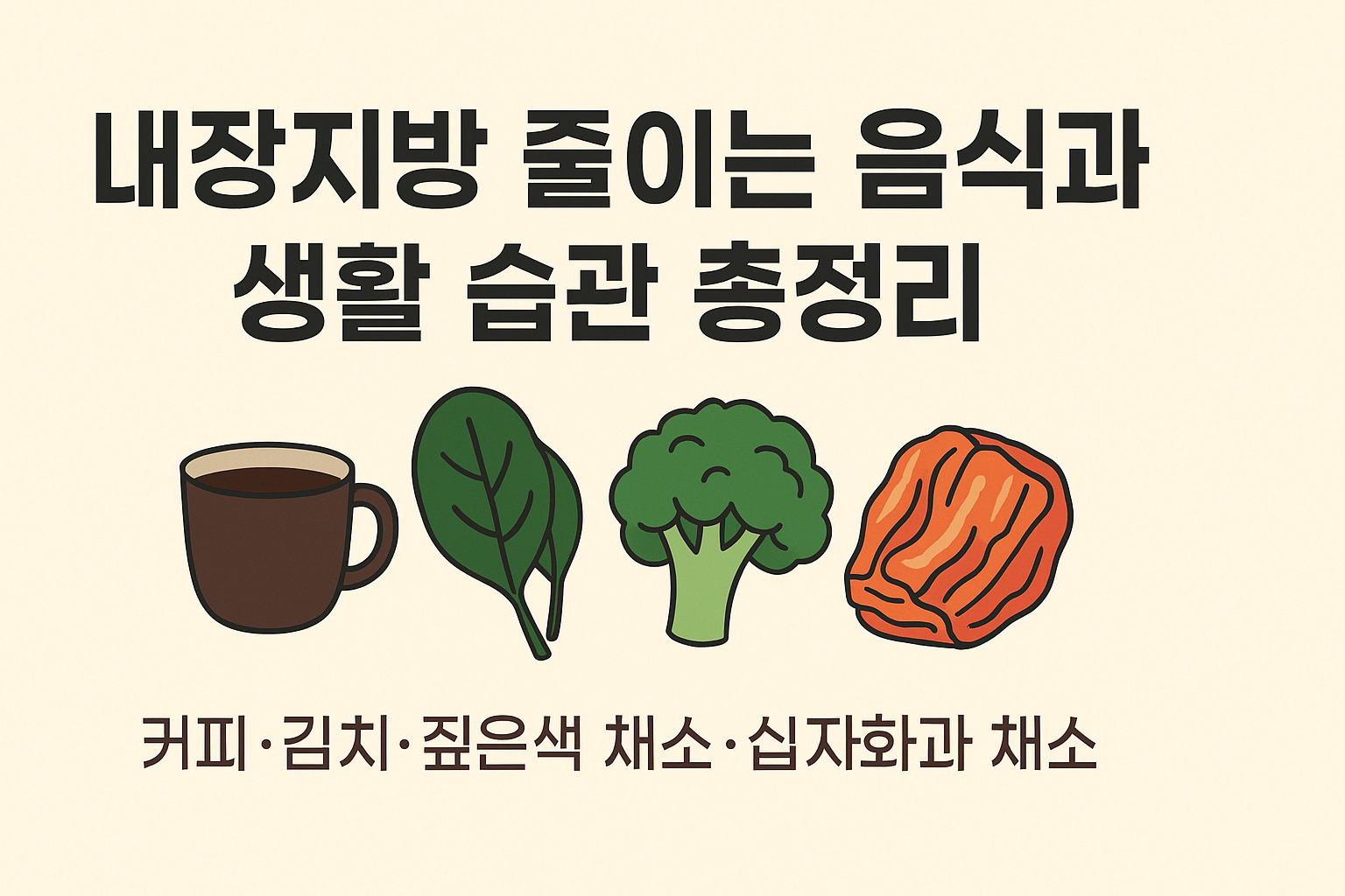 내장지방은 하루아침에 생기지 않았듯, 하루에 사라지지 않습니다. 그러나 식단의 작은 교체와 생활 루틴만으로도 충분히 줄일 수 있습니다. 오늘부터 커피는 블랙으로, 반찬은 초록 채소로, 밤에는 숙면 준비로 바꿔보세요.