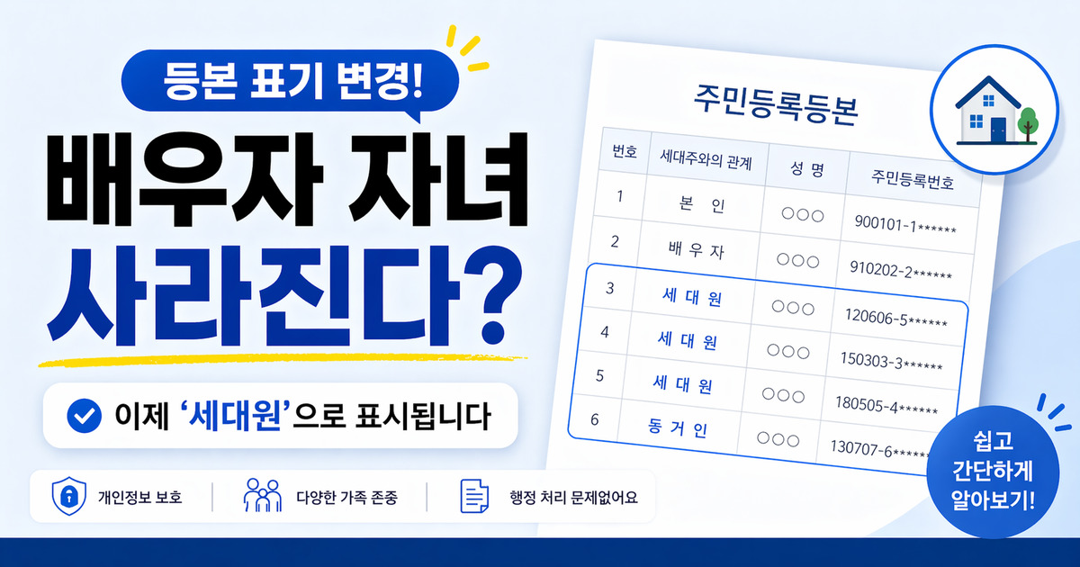 처음에는 단순한 용어 변경처럼 보일 수 있지만, 실제로는 가족 형태에 대한 인식 변화와 개인정보 보호를 반영한 중요한 행정 변화라고 볼 수 있습니다. 예전처럼 가족관계를 세세하게 드러내기보다, 함께 거주하는 구성원 중심으로 표기를 바꾸는 방향으로 정리된 것입니다.